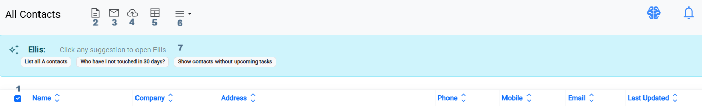 - More Options - Opens an additional menu with more options for your list of Contacts.